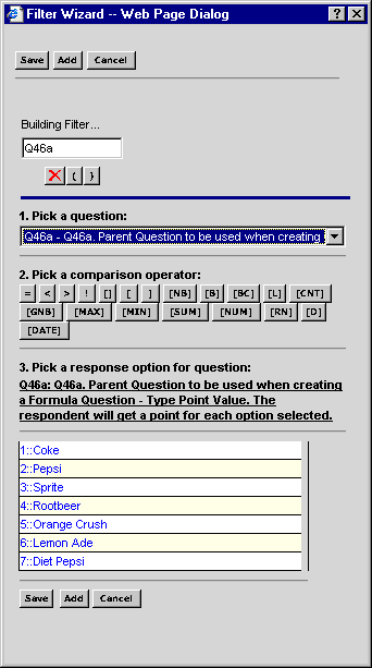 A point value question evaluates one or more filter statements. For